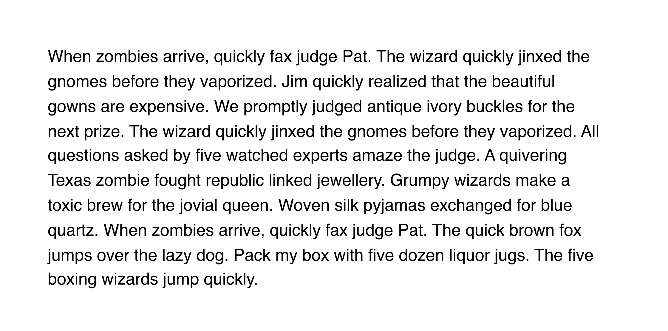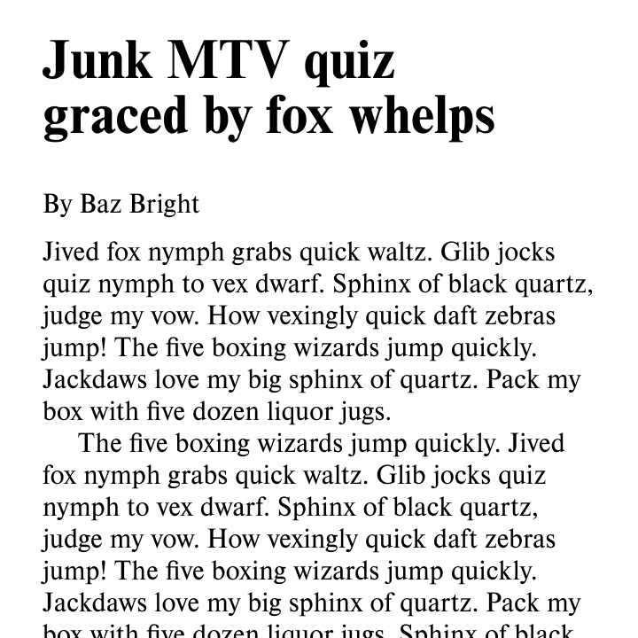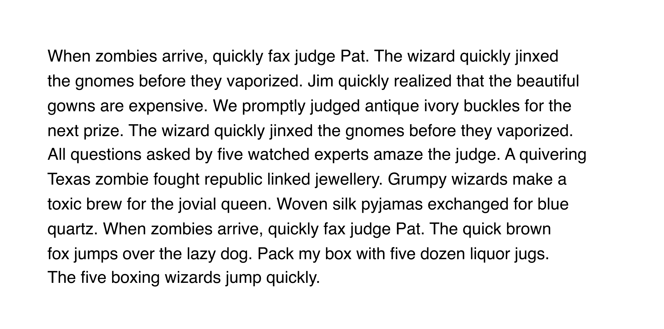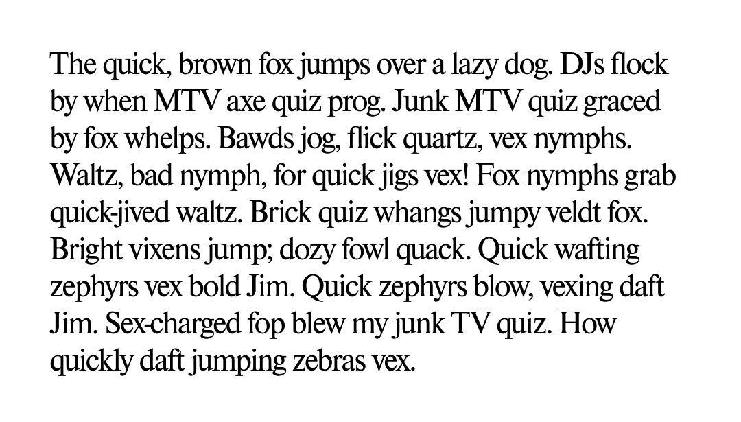 Whether for print or for screen, it’s essential that body text is set in a legible font. Avoid fonts with low x-height or high stroke contrast, and generally stick to a serif or sans-serif option.