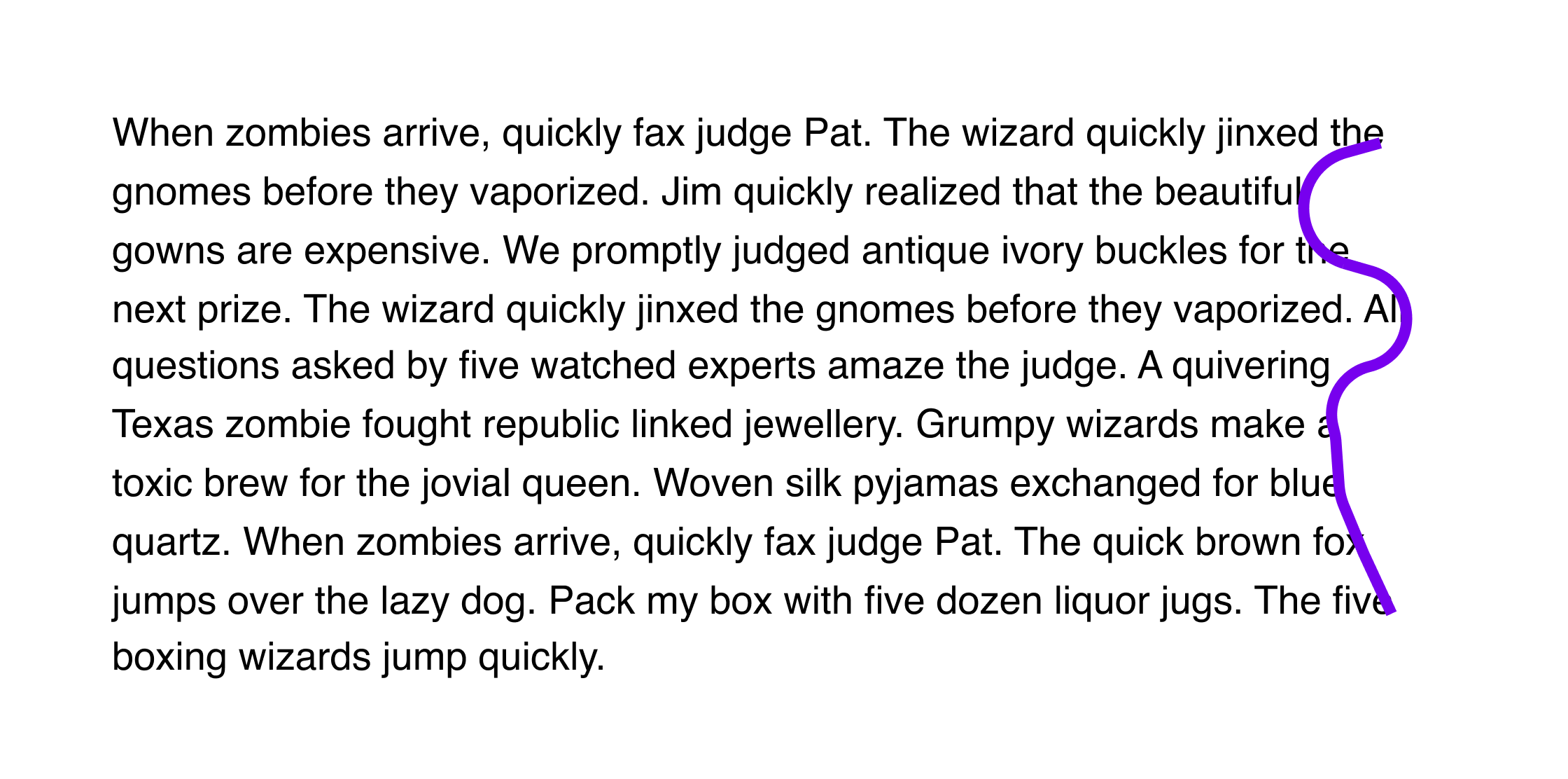 When ragging the rest of the paragraph, aim for a gentle convex shape, with no sudden changes in line length. For example, we could take this: