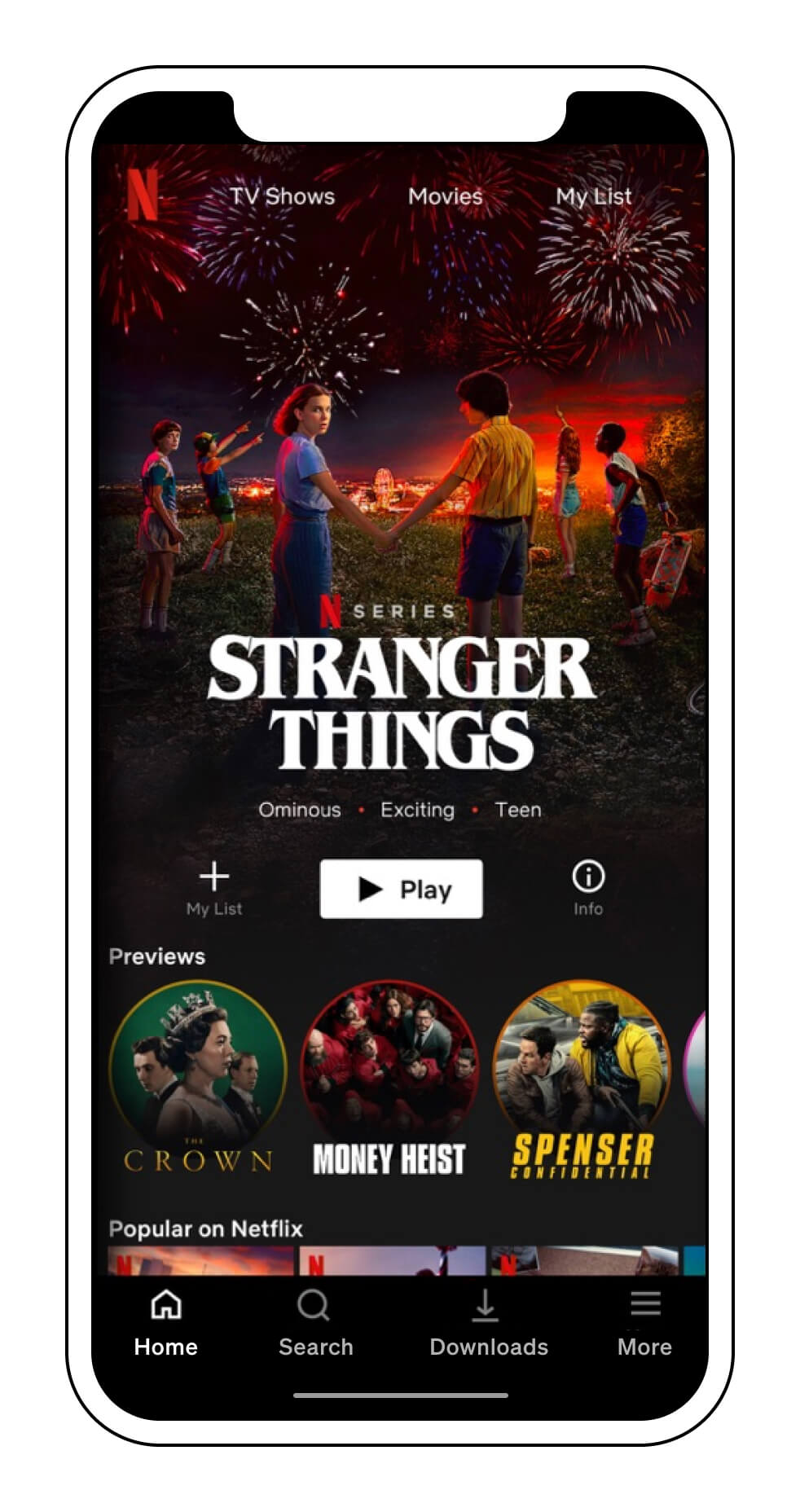 Many high-profile apps still use extremely small interface text on mobile. For example, the navigation bar in the Netflix app has label text set at around 10px, even on a large screen like the iPhone 11 Pro Max.
