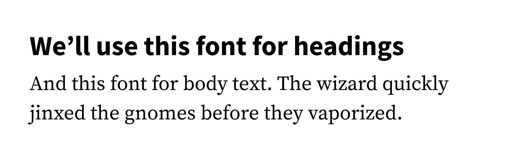 This combination of Source Sans Pro and Source Serif Pro is perfect. The two fonts are from the same “superfamily”, meaning that (in this case) they share the same letter shapes, and are designed to work together. It is also effective to pair a serif and a sans-serif.