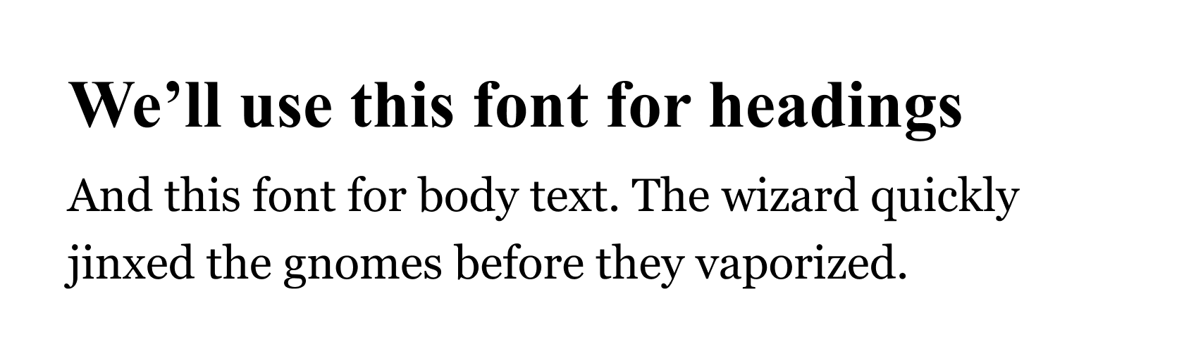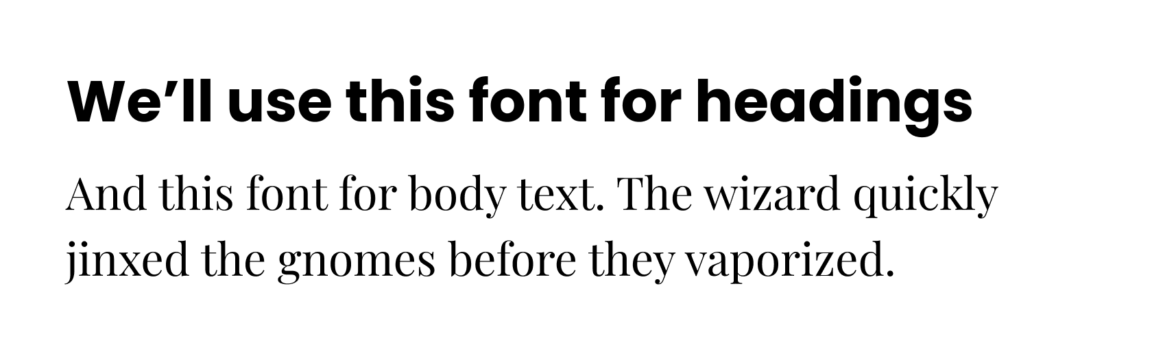 This combination of Poppins Bold and Playfair Display doesn’t work. Although it pairs a serif with a sans-serif, the personality of the two fonts is very different, meaning that the combination feels incoherent. Also, Playfair Display is designed for use at large sizes, and would have poor readability as a body text font.