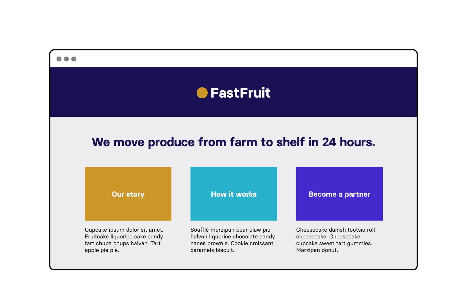 Here’s our colour palette applied to FastFruit’s website: