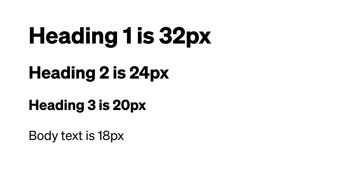 Generally, headings work well when they’re a bit bigger than body text, because this lifts them up the visual hierarchy of the page. If, for example, you’re designing a report, the text might have sub-sections and sub-sub-sections. For that, you can create different heading styles that use different sizes. For example:
