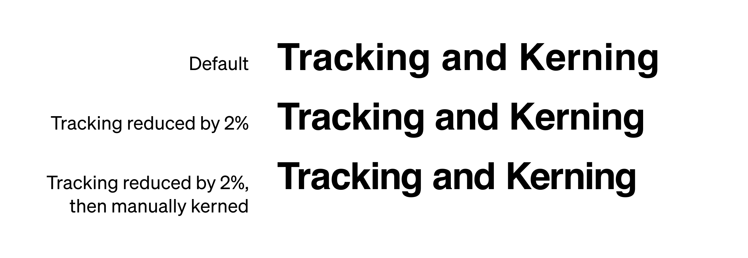 Tracking (the spacing between all letters in a stretch of text) and kerning (a spacing adjustment between two individual letters) can make or break the appearance of a typeface.