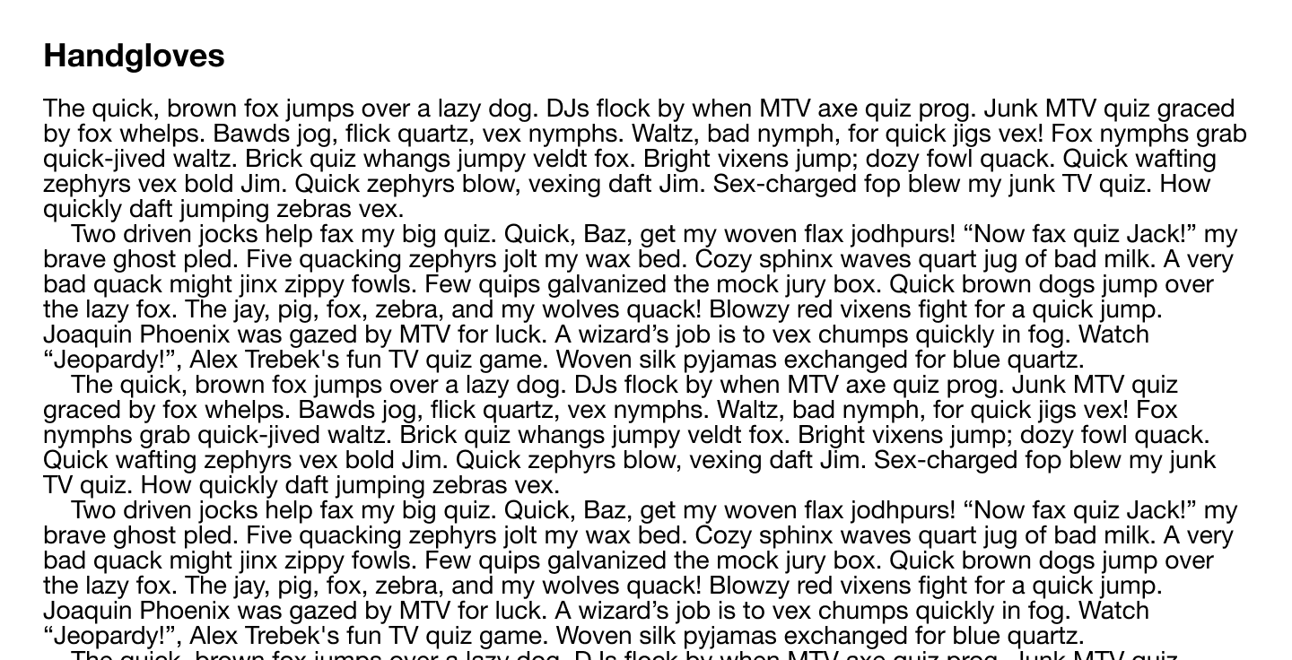And here’s 14px Helvetica with 21px line spacing and generous margins: